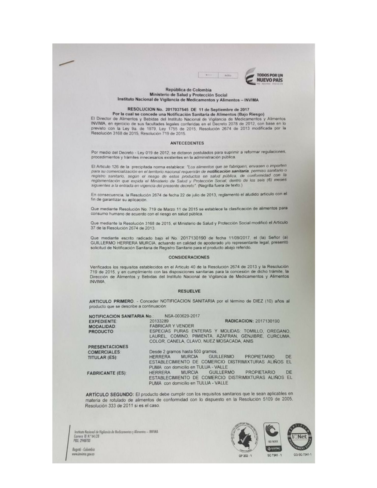 NSA 003629-2017 DEL 11 DE SEPTIEMBRE DE 2017 EXPEDIDA POR EL INVIMA